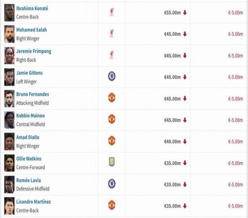 英超身价跌幅榜:罗德里、福登下跌2000万欧,维尔茨、萨卡下降1000万欧 更多消息,稍后带来。 |