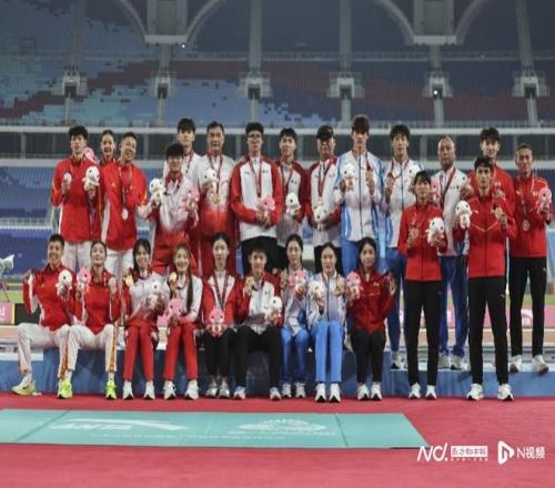 广东田径首金喜悦再来一次!4×400米混合接力颁奖