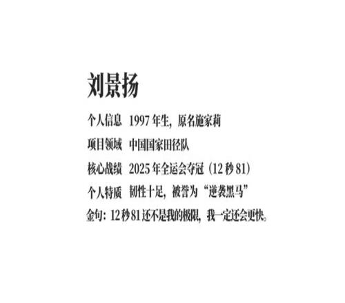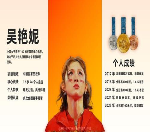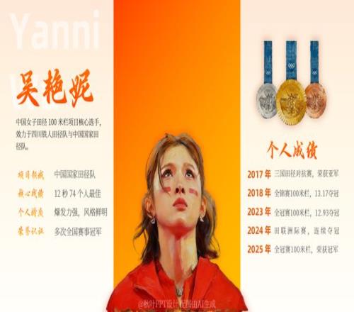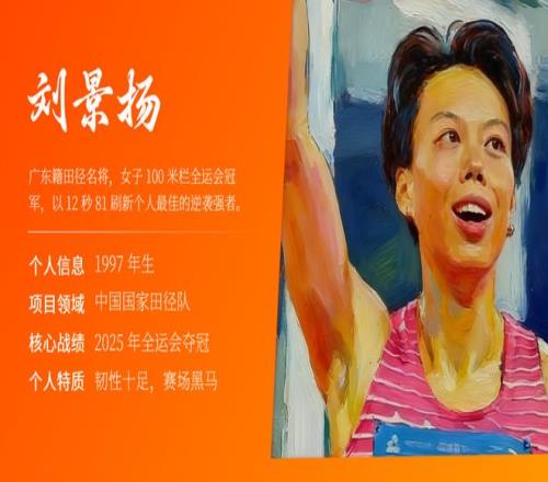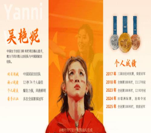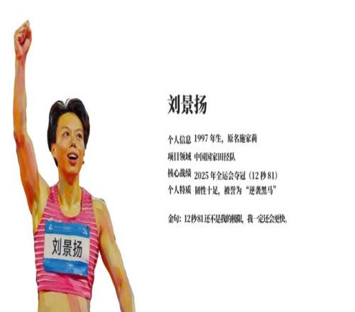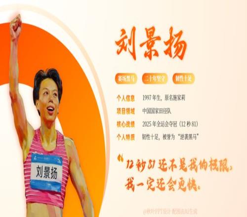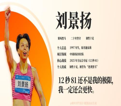 而名不见经传的刘景扬则逆袭夺冠,成为了赛场黑马! 有人为“跨栏女王”的惜败惋惜,也有人为“黑马”的逆袭喝彩 今天我们就为这两位优秀运动员做了一份人物介绍 PPT,带你一键解锁她们的硬核人生!