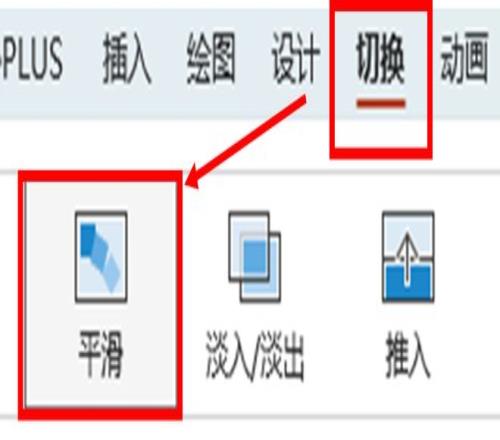 并在第二页设置【切换】-【平滑】↓