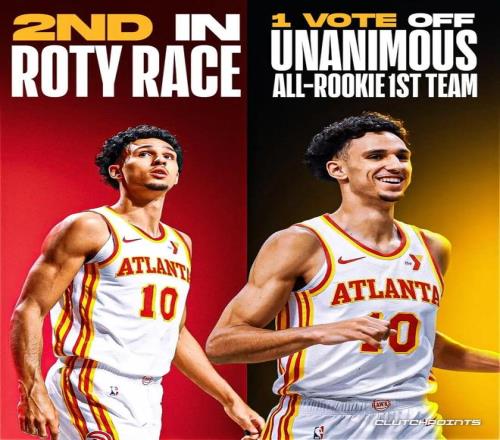 要说原因,其实也能理解,里萨谢实在太普通了。 新秀赛季,里萨谢一共为老鹰打了75场比赛,场均上场24.6分钟,得到12.6分3.6篮板1.2助攻,三项命中率45.8%/35.5%/71.1%,球权使用率20.3%,真实命中率55.8%。 这样的表现放在很多年份都只能算一般,但因为上赛季是知名的选秀小年,里萨谢不仅入选了最佳新秀一阵,还在最佳新秀评选里名列第二。