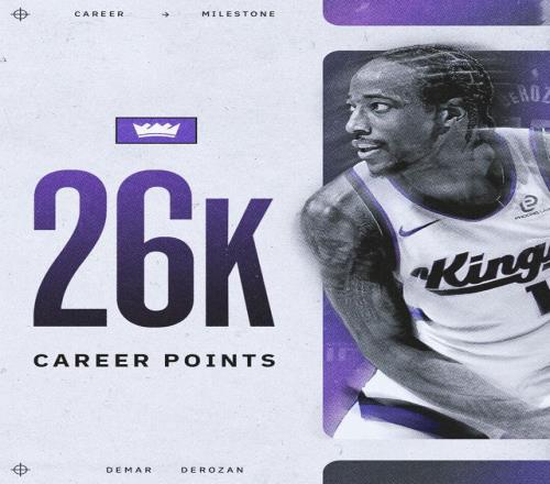 据统计,本场比赛过后,德罗赞生涯的总得分正式突破26000分里程碑,他也是联盟历史上第23位实现这一成就的球员。
